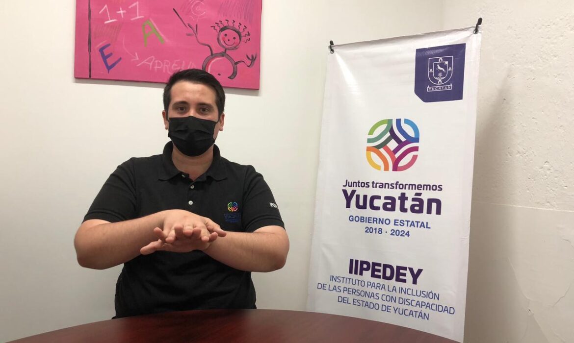 Ángel es uno de los traductores de lengua de señas que trabaja en el Instituto para la Inclusión de las Personas con Discapacidad del Estado de Yucatán. Uno lo mira en los eventos oficiales del Ejecutivo y en un principio piensas que es una persona con discapacidad, pero habla y escucha a la perfección. Incluso él mismo se sorprende de la facilidad con la que aprendió a comunicarse en la lengua de señas.