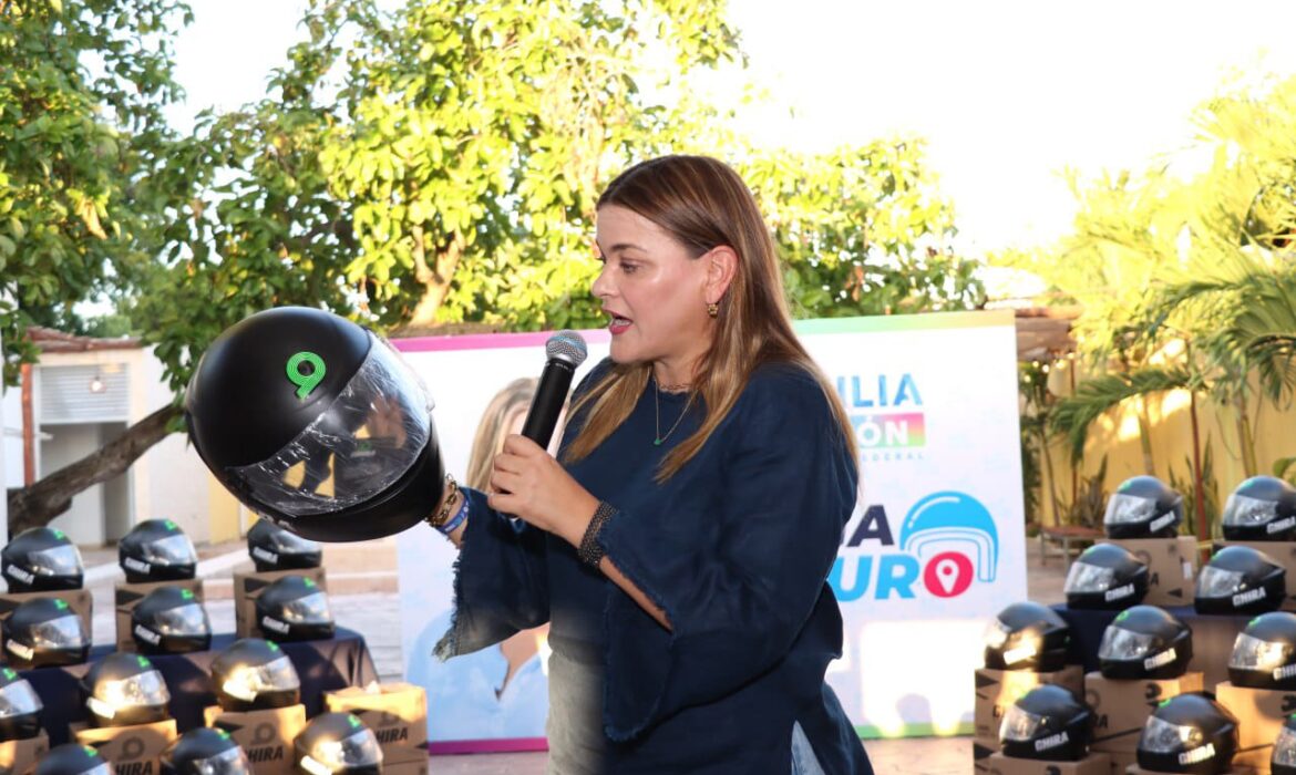 Mérida, Yucatán, 26 de mayo de 2023.- La diputada federal Cecilia Patrón Laviada puso en marcha el programa “Llega Seguro”, mediante el cual las y los motociclistas pueden obtener un casco cuyas características se establecen en el Reglamento de Vialidad.