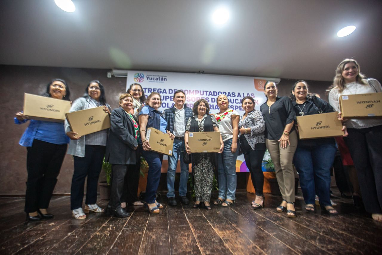 Mérida, Yucatán, 11 de diciembre de 2023.- Con la finalidad de contribuir a la mejora de la práctica docente, así como promover ambientes favorables para el proceso de enseñanza y aprendizaje, el secretario estatal de Educación, Liborio Vidal Aguilar, hizo entrega de 51 equipos de cómputo a supervisores de nivel Preescolar, Primaria y Educación Especial.