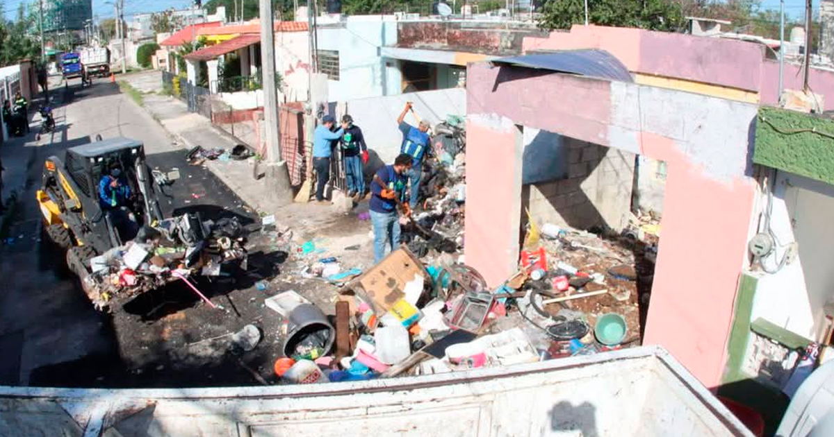 En días recientes, el gobierno municipal retiró casi 160 toneladas de basura de viviendas en las colonias Pacabtún, Mayapán y el fraccionamiento Chenkú.