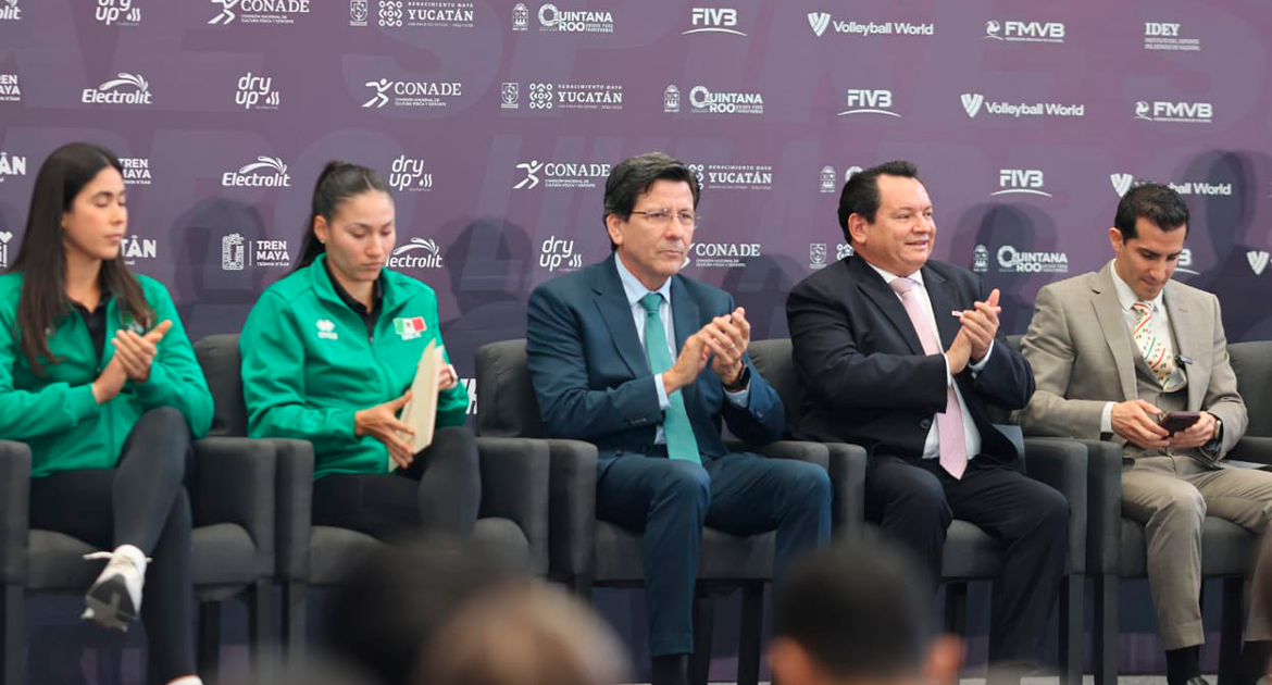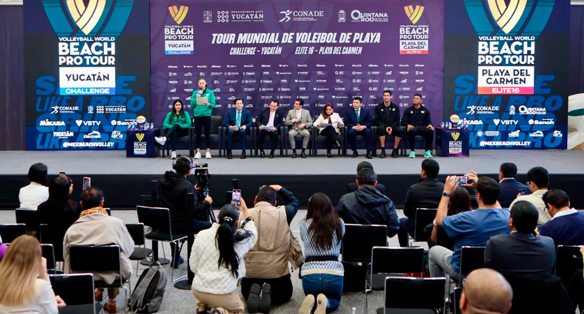 Mérida, Yucatán, 17 de febrero de 2025.- Yucatán albergará el Tour Mundial de Voleibol de Playa Challenge 2025, del 19 al 23 de marzo en Puerto Progreso. El Gobernador Joaquín Díaz Mena anunció el evento desde la Ciudad de México, acompañado de Rommel Pacheco Marrufo, director de la Conade, y otros funcionarios.