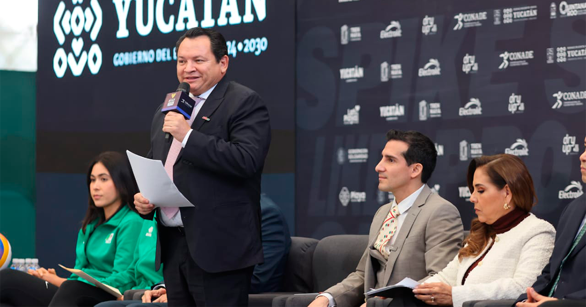 Mérida, Yucatán, 17 de febrero de 2025.- Yucatán albergará el Tour Mundial de Voleibol de Playa Challenge 2025, del 19 al 23 de marzo en Puerto Progreso. El Gobernador Joaquín Díaz Mena anunció el evento desde la Ciudad de México, acompañado de Rommel Pacheco Marrufo, director de la Conade, y otros funcionarios.