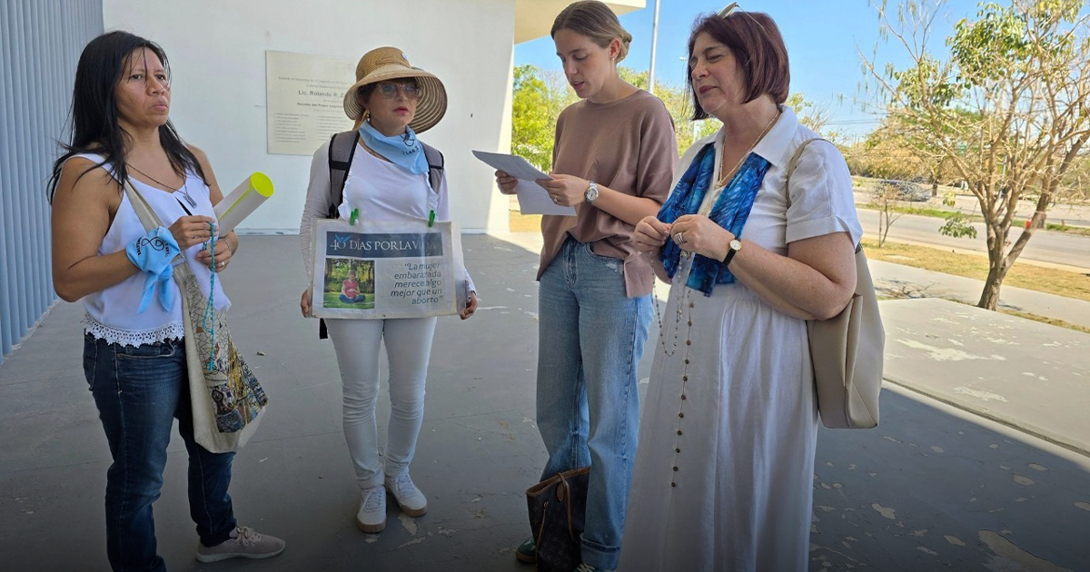 Alejandra Yáñez Rubio, del colectivo Conciencia y Derechos Humanos, declaró: “Exigimos que retiren iniciativas que legalicen el aborto hasta los nueve meses en Yucatán. Somos organizaciones y colectivos de mujeres que defendemos el derecho a vivir y rechazamos rotundamente las dos iniciativas de ley que hoy se pretende pasar a comisiones, ya que permiten el aborto dentro del vientre materno hasta los nueve meses”.