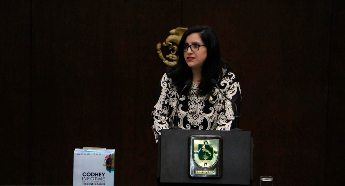 Mérida, Yucatán, 27 de febrero de 2025.- La Presidenta de la Comisión de Derechos Humanos del Estado de Yucatán (Codhey), María Guadalupe Méndez Correa, presentó el Informe Anual de Actividades 2024 ante el Congreso del Estado. En su discurso, destacó la necesidad de abordar temas prioritarios como la salud mental, la violencia obstétrica, la discriminación por diversidad sexual y las violencias contra mujeres y niñas.