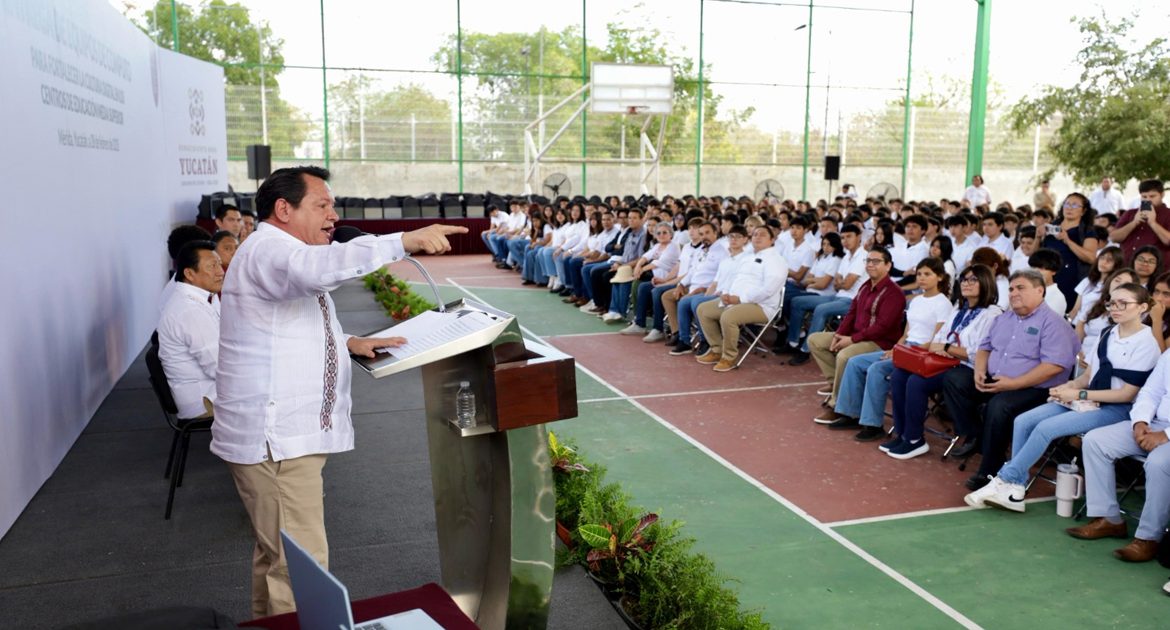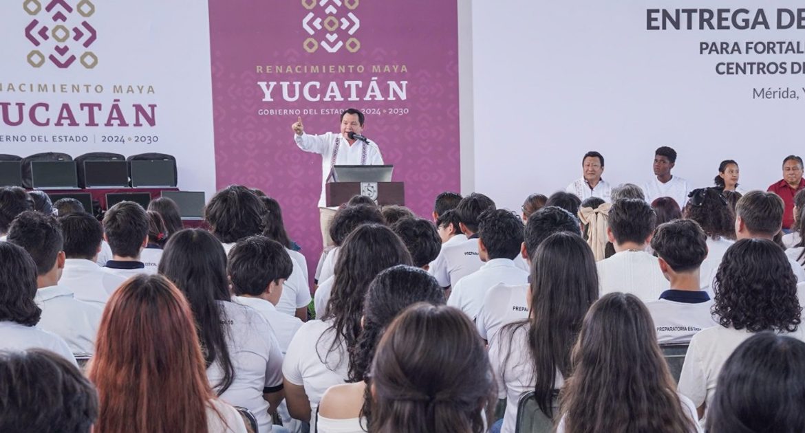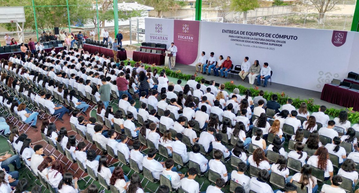 Mérida, Yucatán, 28 de febrero de 2025. – El Gobernador Joaquín Díaz Mena entregó más de 400 computadoras portátiles a 13 bachilleratos estatales en Yucatán.