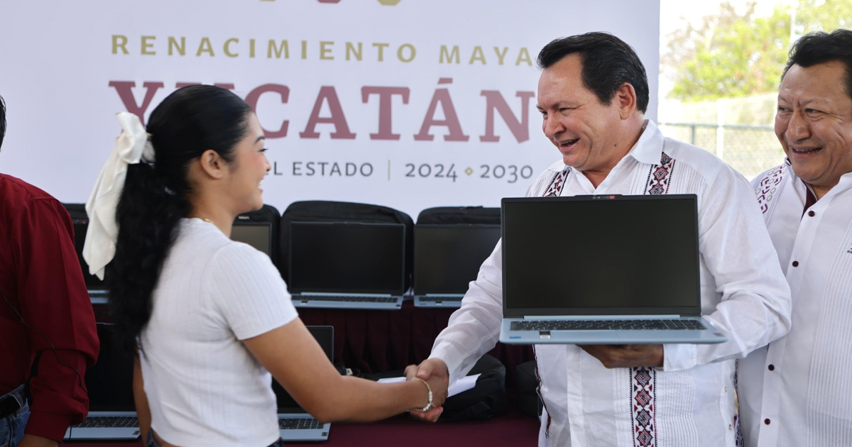 Mérida, Yucatán, 28 de febrero de 2025. – El Gobernador Joaquín Díaz Mena entregó más de 400 computadoras portátiles a 13 bachilleratos estatales en Yucatán.