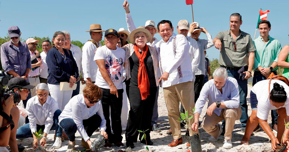 Mérida, Yucatán, 14 de marzo de 2025.- El Gobernador Joaquín Díaz Mena y la titular de la Secretaría de Medio Ambiente y Recursos Naturales (Semarnat), Alicia Bárcena Ibarra, dieron inicio al programa de Reforestación de Manglares en la costa yucateca. El proyecto busca sembrar más de 100 mil ejemplares de mangle rojo, negro y verde como medida de protección ante fenómenos meteorológicos y para preservar la biodiversidad.