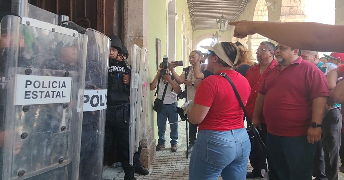 La protesta, que inició de manera pacífica, escaló cuando los maestros intentaron ingresar al Palacio de Gobierno. Durante la manifestación, un grupo de trabajadores de la educación intentó ingresar a las instalaciones. Elementos de la Secretaría de Seguridad Pública (SSP) intervinieron para garantizar la protección ciudadana, mantener el orden y agilizar la vialidad en la zona, utilizando polvo de extintor como medida de contención para dispersar a los manifestantes y evitar situaciones de riesgo.