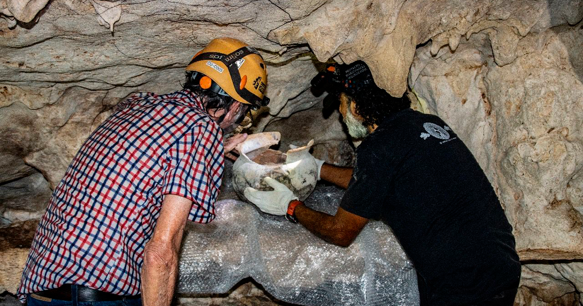 Quintana Roo, 22 de abril de 2025.- Especialistas del Instituto Nacional de Antropología e Historia (Inah) rescataron una olla globular maya en el sistema de cavernas Garra de Jaguar, cerca de Playa del Carmen. El hallazgo fue reportado por el grupo Cenotes Urbanos AC y atendido por los arqueólogos José Antonio Reyes Solís y Enrique Terrones González en abril.