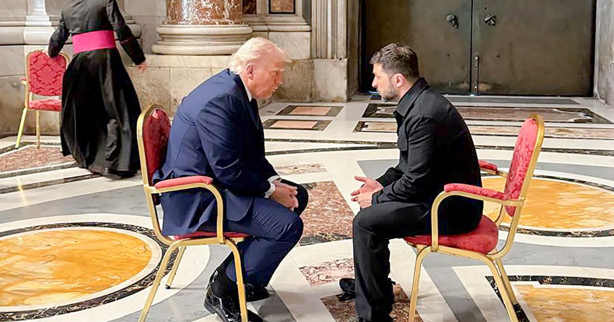 Mérida, Yucatán, 26 de abril de 2025.- El Presidente Donald Trump, y su homólogo ucraniano, Volodímir Zelenski, mantuvieron una reunión de 15 minutos en el Vaticano previo al funeral del Papa Francisco.