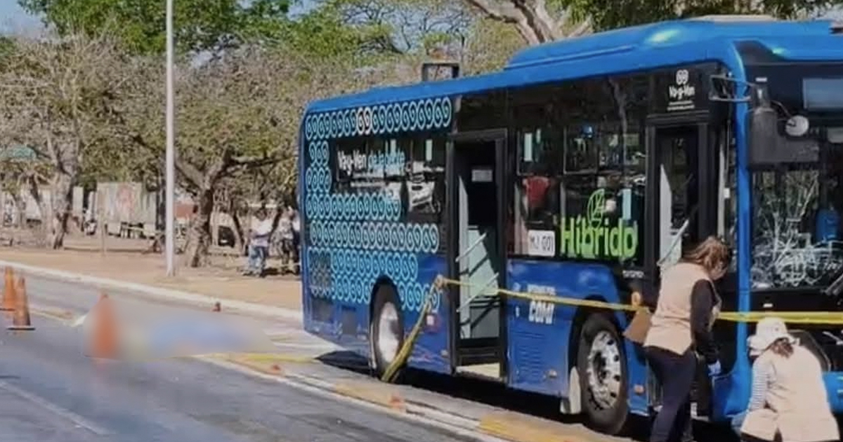 Mérida, Yucatán, 29 de abril de 2025.- Una mujer murió esta mañana tras ser atropellada por una unidad «Va y Ven» en la Avenida Internacional, a la altura de la fábrica Bimbo.