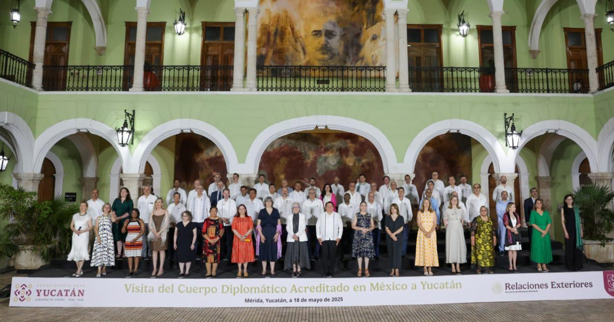 Mérida, Yucatán, 19 de mayo de 2025.- El Gobernador Joaquín Díaz Mena recibió a más de 60 embajadores y cónsules en Palacio de Gobierno para presentar las oportunidades de inversión en Yucatán.