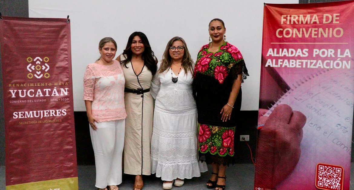 Mérida, Yucatán, 23 de mayo de 2025.- El Instituto de Educación para Adultos del Estado de Yucatán (Ieaey) y la Secretaría de las Mujeres (Semujeres) firmaron el convenio «Aliadas por la Alfabetización». El acuerdo busca reducir el analfabetismo entre mujeres y adolescentes que no tuvieron acceso a educación escolar, condición que incrementa su vulnerabilidad social.