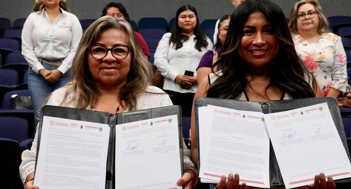 Gladys Angélica Uc Echeverría, Directora del Ieaey, y Sisely Burgos Cano, titular de Semujeres, establecieron acciones conjuntas de enseñanza. El programa proporcionará herramientas educativas básicas para que las participantes puedan ejercer sus derechos con mayor autonomía.