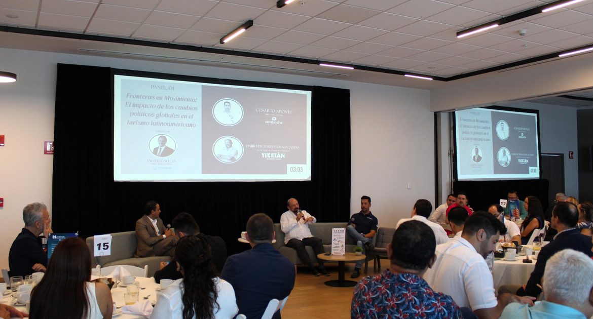 Benjamín Díaz presentó la ponencia “Inteligencia artificial aplicada al turismo”, donde explicó su impacto en la personalización de experiencias y análisis de mercado. En otro panel, se discutió cómo los cambios políticos globales afectan al turismo latinoamericano. Flota Ocampo resaltó que Yucatán tiene potencial para captar viajeros de mercados alternativos.
