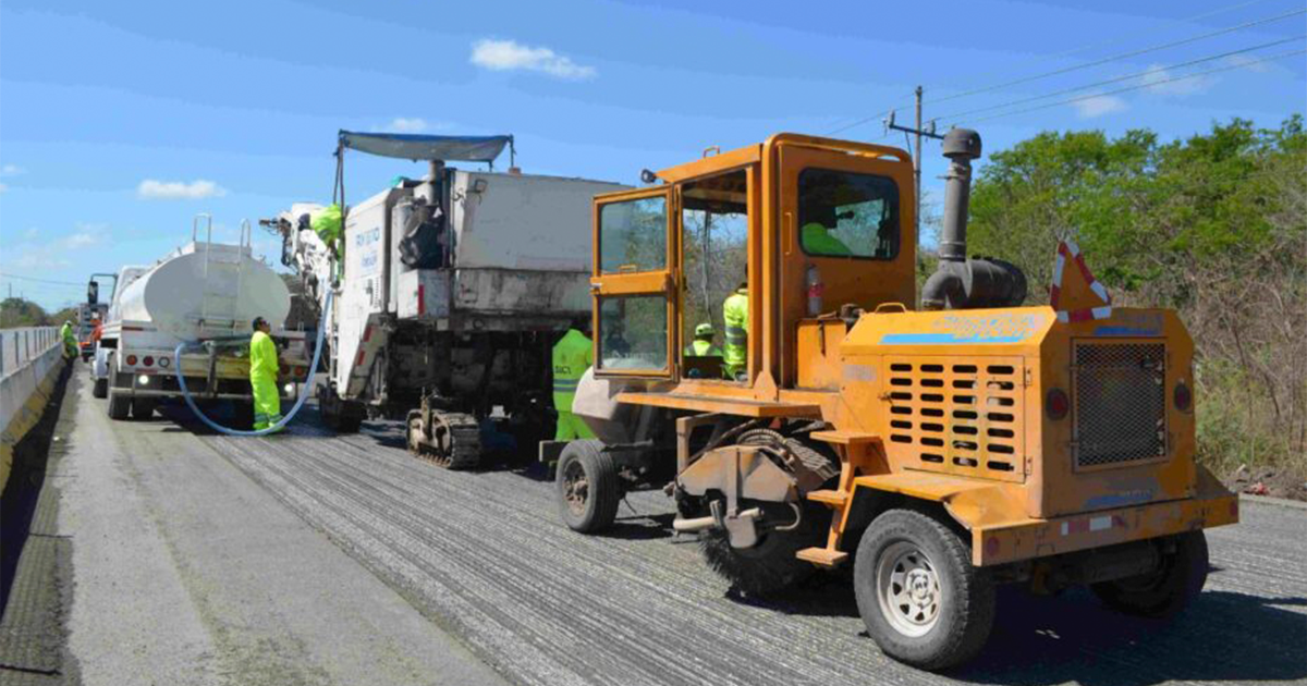 Los trabajos incluyen fresado y colocación de carpeta asfáltica en 15.8 km de la vía Mérida-Chetumal, además de riego de sello en 21.4 km adicionales de esta misma carretera.