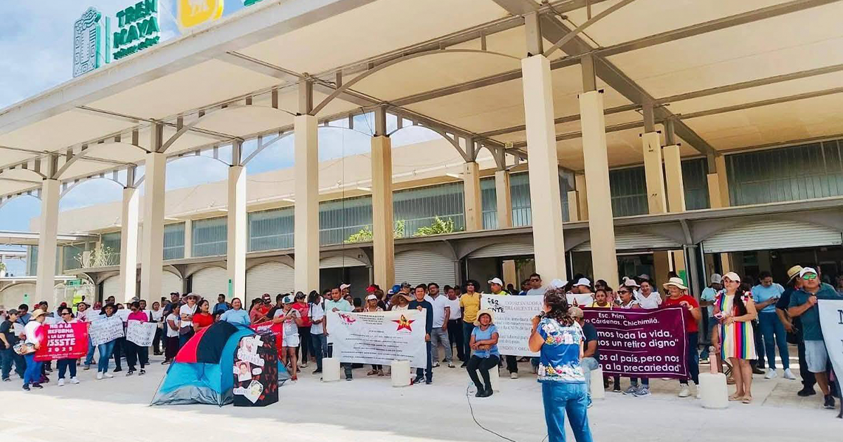 Docentes tomaron estación del Tren Maya en nueva jornada de protesta