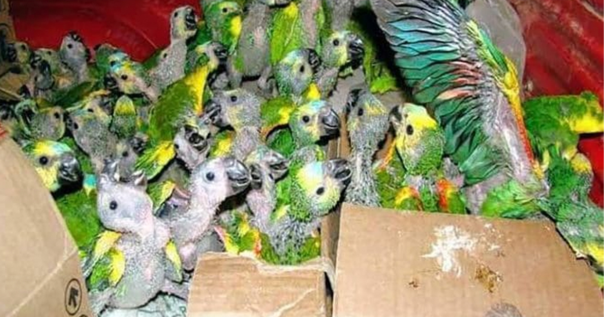 Durante el operativo, autoridades aseguraron un mono araña (Ateles geoffroyi) y 20 loros de tres especies diferentes: frente blanca (Amazona albifrons), corona azul (Amazona farinosa) y cachetes amarillos (Amazona autumnalis). También se les decomisaron cartuchos de uso exclusivo del Ejército.