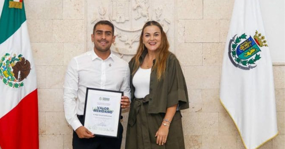 El capitán Castillo recibió el reconocimiento acompañado de su familia. La distinción «Valor Meridano» honra a ciudadanos cuyas acciones ejemplares son motivo de orgullo para los habitantes de la capital yucateca.