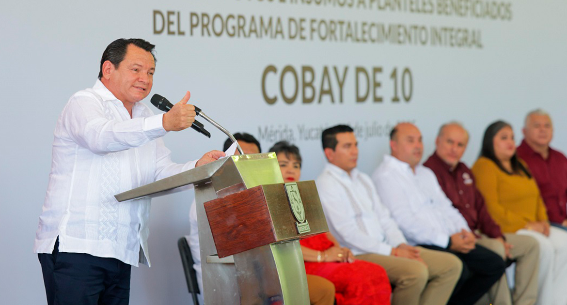 Mérida, Yucatán, 5 de julio de 2025.- El Gobernador Joaquín Díaz Mena puso en marcha el programa «Cobay de 10» con una inversión superior a ocho millones de pesos. La iniciativa beneficiará a más de 28 mil estudiantes y 2 mil trabajadores de los 72 planteles del Colegio de Bachilleres en Yucatán, mediante la entrega de equipamiento y materiales esenciales.