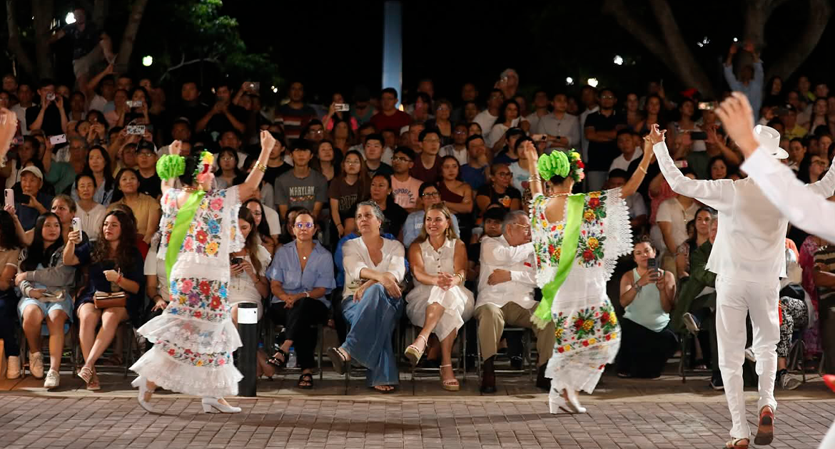 Mérida, Yucatán, 8 de julio de 2025.- Los ballets folclóricos de Mérida conmemoraron los 43 años ininterrumpidos de la Vaquería Yucateca con una presentación en los bajos del Palacio Municipal. Al ritmo de jaranas clásicas como «La fiesta del pueblo» y «Aires Yucatecos», los grupos infantil, juvenil, adulto mayor y titular mostraron pasos tradicionales ante la Alcaldesa Cecilia Patrón Laviada y cientos de asistentes.