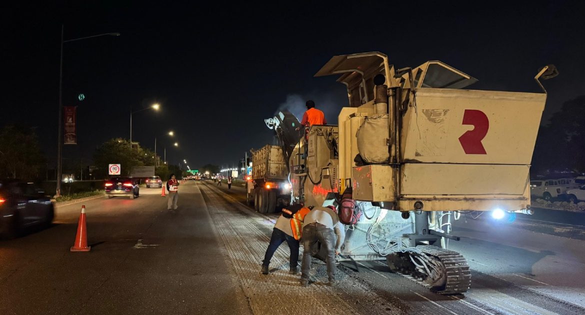Las labores incluyen renivelación con concreto asfáltico y aplicación de nueva carpeta para mejorar las condiciones de circulación.