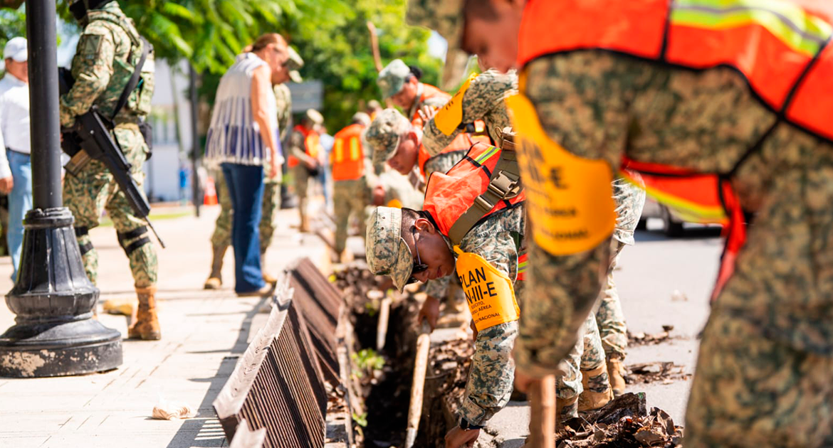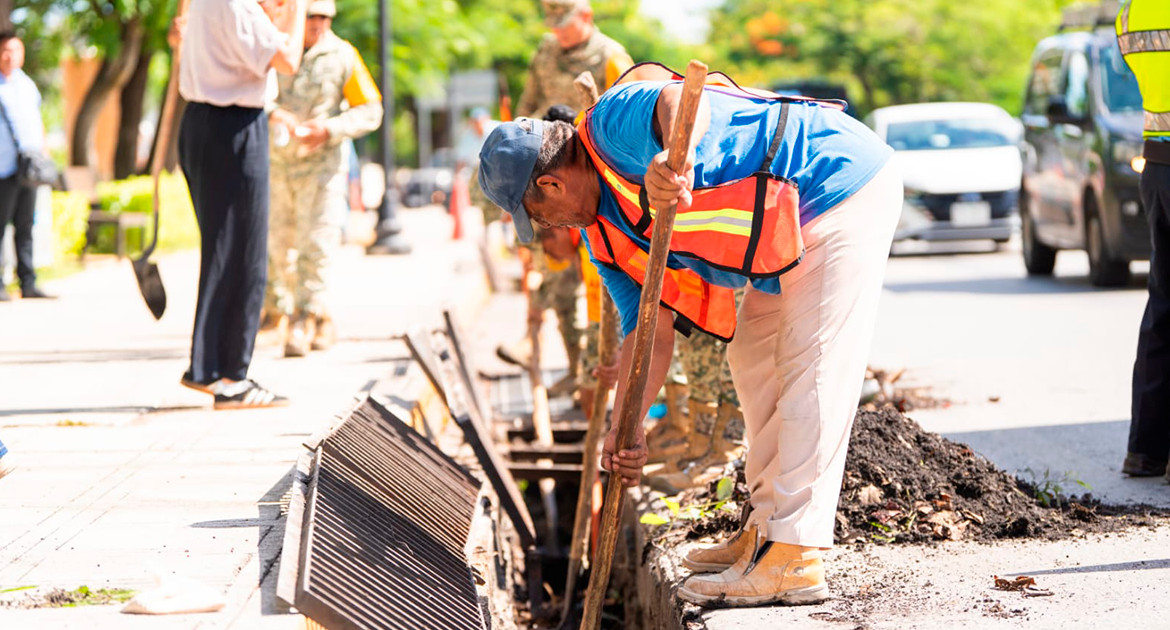 La Alcaldesa destacó que estas acciones conjuntas permiten atender más puntos de la ciudad. El Plan DN-III-E del Ejército Mexicano se activó en su fase preventiva, con personal militar apoyando en labores de mantenimiento. El objetivo es garantizar la capacidad de absorción del sistema pluvial.