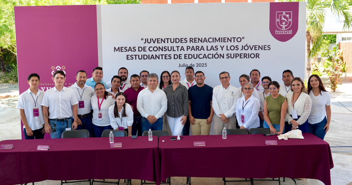 Mérida, Yucatán 21 de julio de 2025. – Más de 500 estudiantes de instituciones educativas superiores participaron en las mesas de consulta Juventudes Renacimiento, realizadas en Mérida, Conkal, Valladolid, Peto y Tizimín. La iniciativa del Gobierno del Estado buscó recoger propuestas para diseñar políticas públicas enfocadas en educación, empleo y desarrollo comunitario.