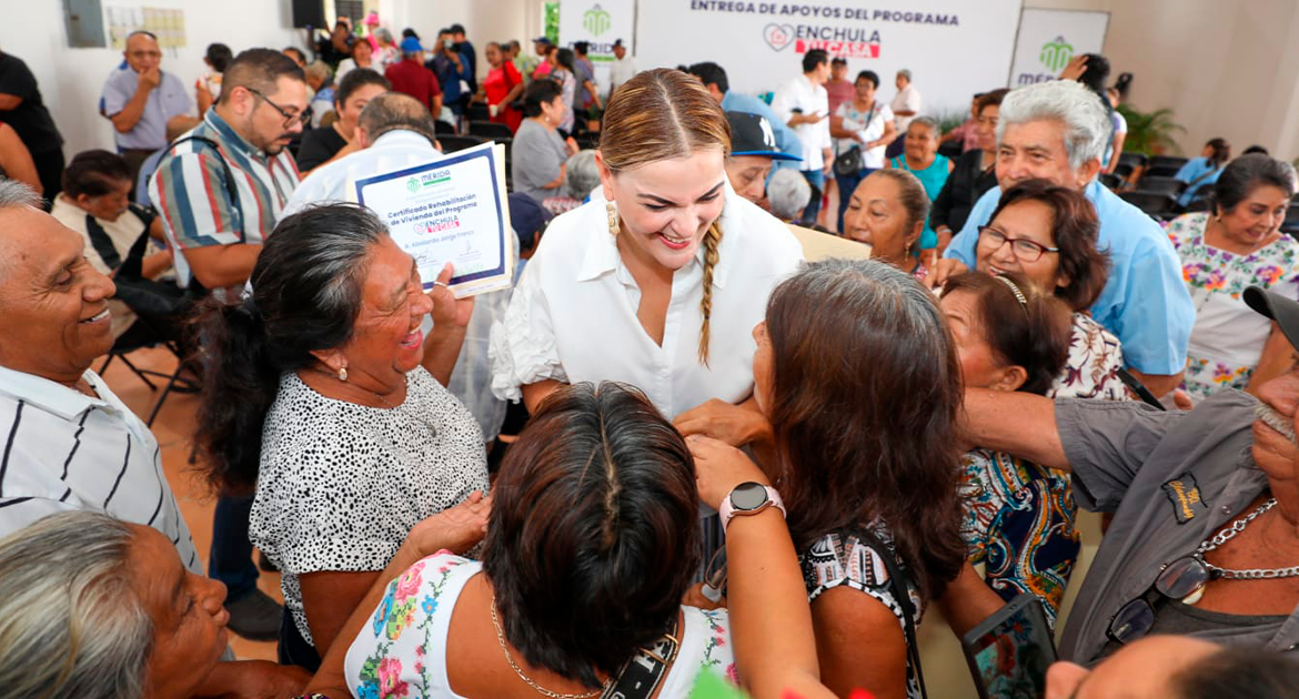 Mérida, Yucatán, 26 de julio de 2025.- El programa «Enchula tu Casa» benefició a 112 adultos mayores del oriente y sur de Mérida con reparaciones y mejoras en sus hogares. La Alcaldesa Cecilia Patrón Laviada destacó que el objetivo es brindar viviendas dignas a quienes contribuyeron al desarrollo de la ciudad, “Queremos devolverles un poco de lo mucho que han hecho por nuestra ciudad”, dijo la edil. Con esta segunda entrega, suman 162 viviendas rehabilitadas en la actual administración, con una inversión de 3.25 millones de pesos.
