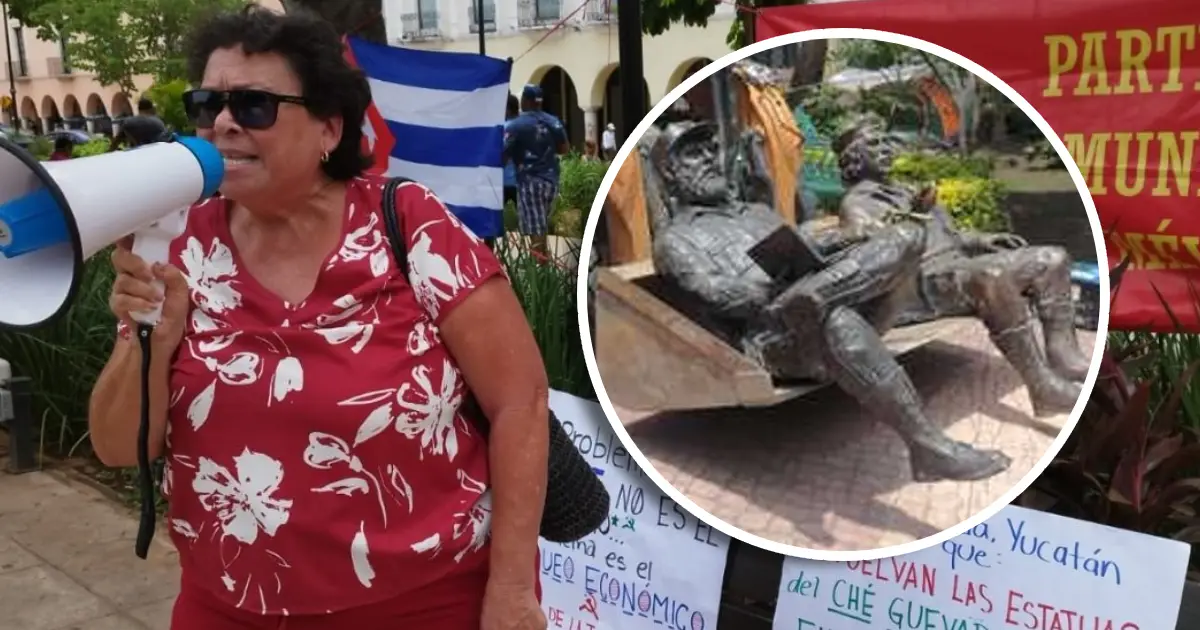 Mérida, Yucatán, 28 de julio de 2025.- Una veintena de simpatizantes del Partido Comunista Mexicano se manifestaron esta mañana en la Plaza Grande del Centro Histórico para exigir el regreso de las estatuas de Fidel Castro y Ernesto “Che” Guevara, retiradas recientemente en la Ciudad de México.