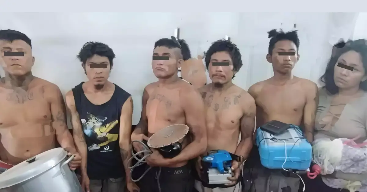Umán, Yucatán, 7 de agosto de 2025.- Seis personas fueron detenidas por elementos de la Policía Municipal tras ser sorprendidas robando objetos de una vivienda deshabitada en la colonia Miguel Hidalgo, en Umán.