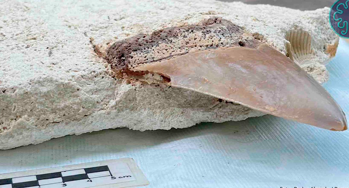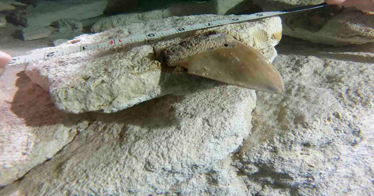 Tulum, Quintana Roo, 8 de agosto de 2025.- Un buzo especializado descubrió en 2019 dos dientes del tiburón prehistórico Otodus megalodón en el cenote Maravilla, en Puerto Morelos, Quintana Roo. Las piezas, una de un ejemplar juvenil y otra de un adulto, se encontraron a 28 metros de profundidad en un contexto subacuático de difícil acceso. Actualmente, los fósiles se exhiben en el Museo Regional de Costa Oriental en Tulum.