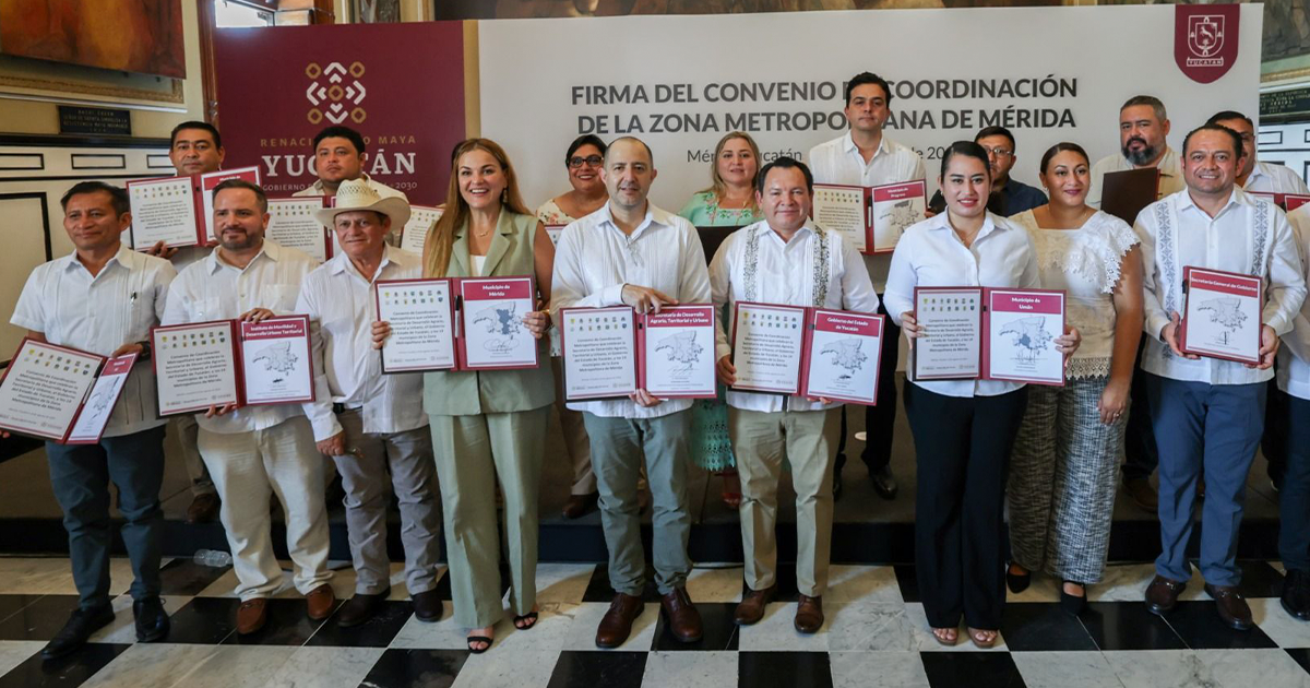 Mérida, Yucatán, 9 de agosto de 2025.- El Gobierno de Yucatán estableció un convenio con Sedatu y 14 ayuntamientos para coordinar el crecimiento urbano de la Zona Metropolitana de Mérida. El acuerdo incluye la creación de una Junta de Coordinación Metropolitana y un Programa de Ordenamiento Territorial para mejorar la movilidad, servicios y protección ambiental.