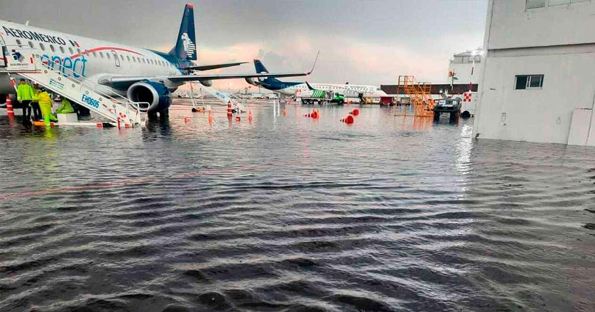 Inundaciones paralizaron operaciones en el Aicm de la Cdmx