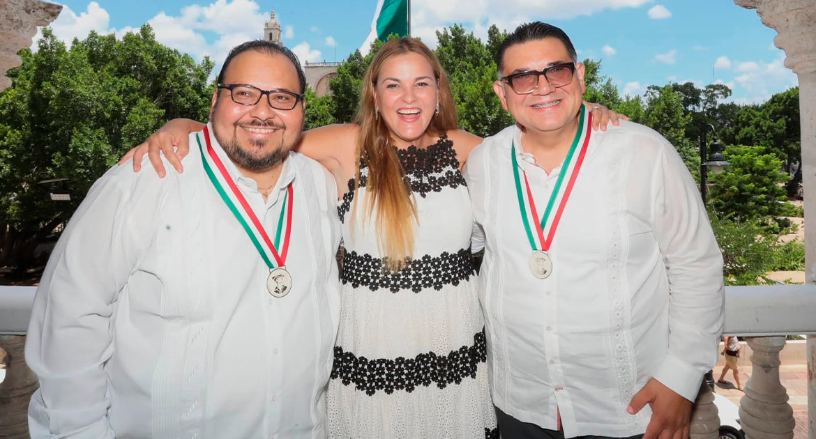 Mérida, Yucatán, 13 de agosto de 2025.- El Cabildo de Mérida otorgó la Medalla Héctor Herrera «Cholo» 2025 a los hermanos Mario y Daniel Herrera Casares, reconocidos artísticamente como «Dzereco y Nohoch». La distinción reconoce su trayectoria de más de 30 años en la comedia regional y su contribución a preservar la identidad yucateca.