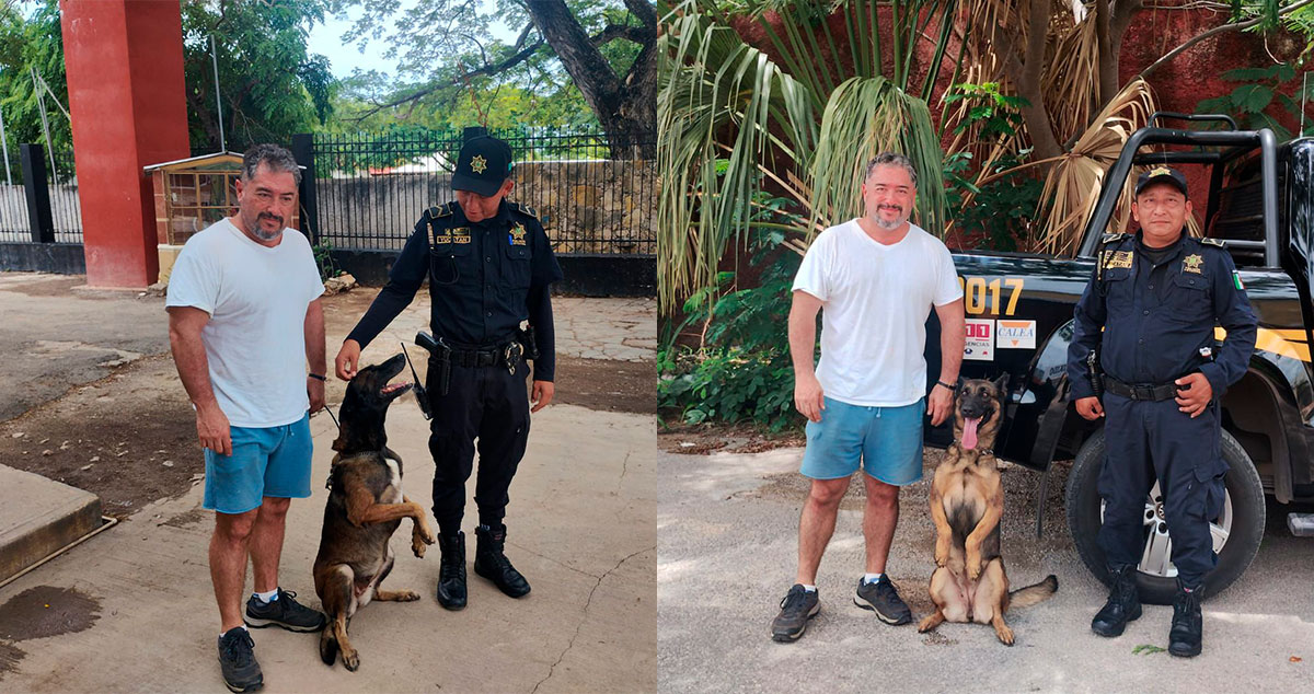Mérida, Yucatán, 13 de agosto de 2025.- Elementos de la Secretaría de Seguridad Pública (SSP) lograron reunir a un vecino del fraccionamiento Bugambilias con sus dos perritas, luego de que ambas se extraviaran durante la madrugada.
