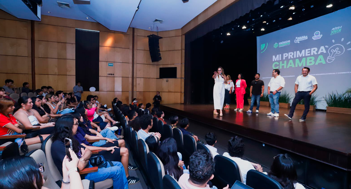 Mérida, Yucatán, 18 de agosto de 2025.- El Ayuntamiento de Mérida realizó la Feria del Empleo «Mi Primera Chamba» en el Centro Cultural Olimpo, con el objetivo de ofrecer oportunidades laborales, de servicio social y prácticas profesionales a jóvenes. El evento forma parte de las acciones para fortalecer la participación juvenil en el desarrollo de la ciudad.