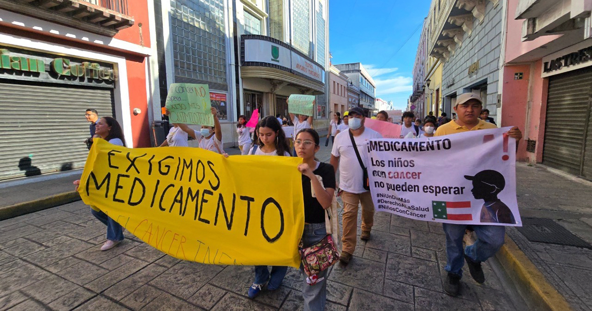Mérida, Yucatán, 18 de agosto de 2025.- Madres y padres de niños con cáncer protestaron frente al Palacio de Gobierno en Mérida por el desabasto prolongado de medicamentos y quimioterapias en el Hospital Agustín O’Horán. Manifestaron preocupación porque fundaciones y organizaciones han tenido que suplir la falta de fármacos esenciales como Metrotexato e insumos básicos para tratamientos oncológicos.