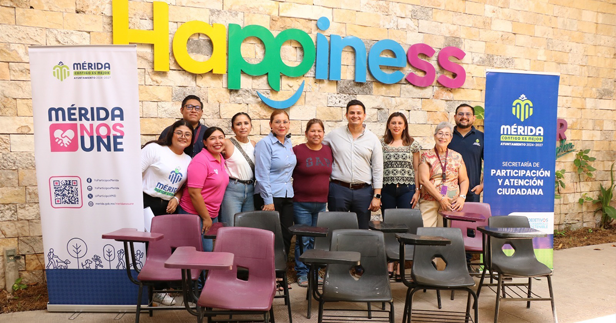En un segundo evento, el programa entregó mobiliario escolar a la asociación Alas Unidas con Liam, A.C., que brinda atención a personas con autismo, Tdah y otras condiciones. La donación incluyó 16 sillas con paleta y dos escritorios, gracias a la colaboración de la Universidad del Sur, Campus Mérida.
