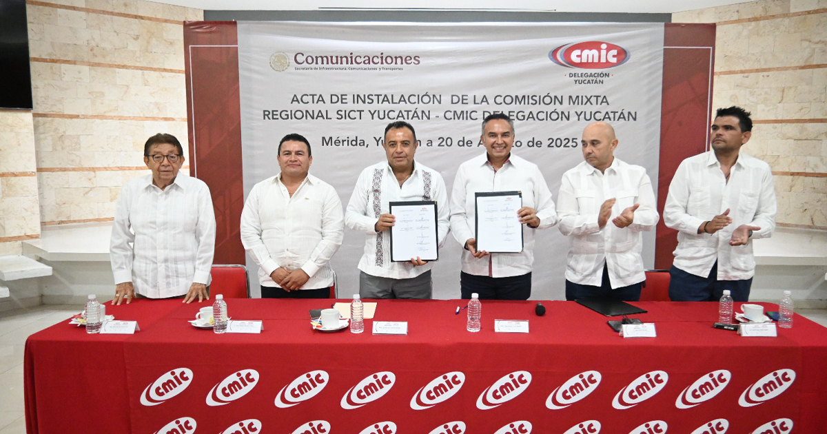 Mérida, Yucatán, 21 de agosto de 2025. – La Secretaría de Infraestructura, Comunicaciones y Transportes (SICT) y la Cámara Mexicana de la Industria de la Construcción (CMIC) delegación Yucatán firmaron el acta de instalación de la Comisión Mixta Regional. El acuerdo busca fortalecer la coordinación para proyectos de infraestructura en la entidad.