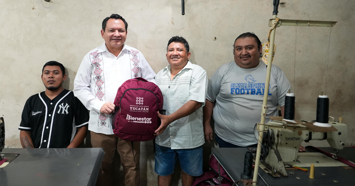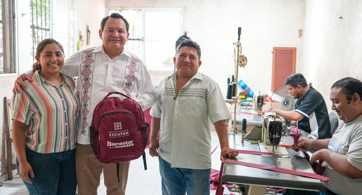 Huhí, Yucatán, 25 de agosto de 2025. – El programa «Bienestar en tu Escuela» emplea a más de 400 artesanos yucatecos en la elaboración de mochilas escolares. Estas mochilas se distribuyen de forma gratuita a estudiantes de primaria en el estado.