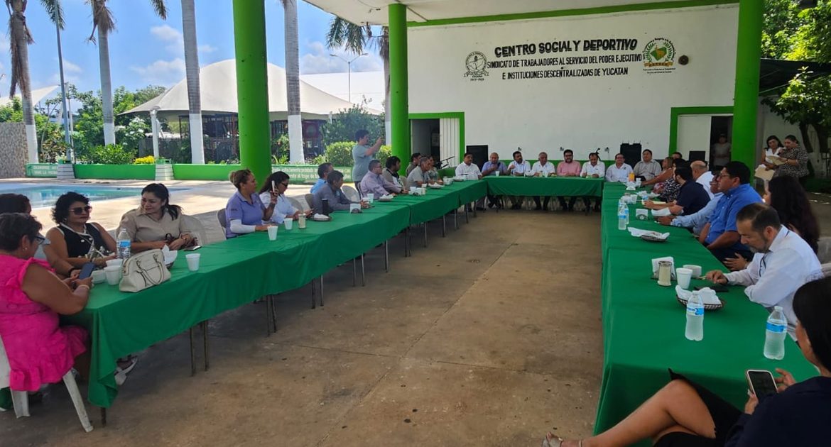 Jervis García Vázquez, líder del STSPEIDY, convocó a la reunión en la que participaron sindicatos como el SNTE, FSTSE y sindicatos municipales. Diego Cetz Pech, director del ISSTEY, reconoció el liderazgo y la unidad lograda.