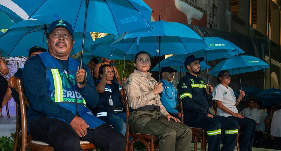 La alcaldesa enumeró obras y servicios. Se ejecutaron 100 kilómetros de calles nuevas y repavimentadas. Se instalaron más de 38,000 luminarias LED. Se mejoraron los sistemas de agua potable en varias comisarías. Se rehabilitaron 38 espacios públicos y se recogieron 400,000 toneladas de basura con el programa Mérida Limpia.