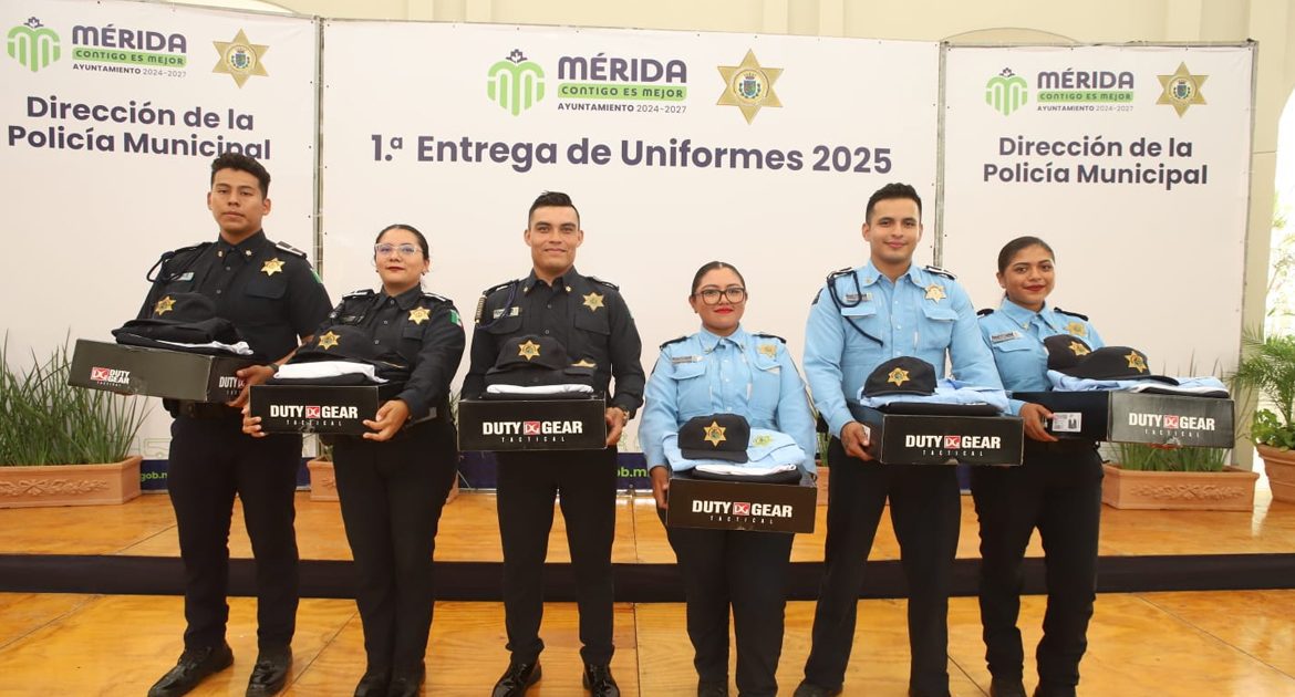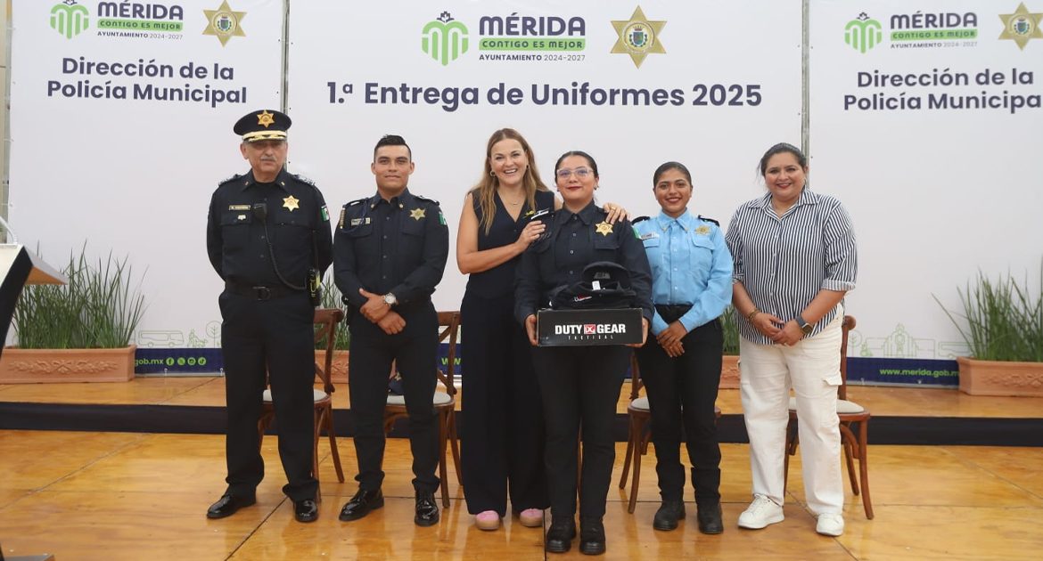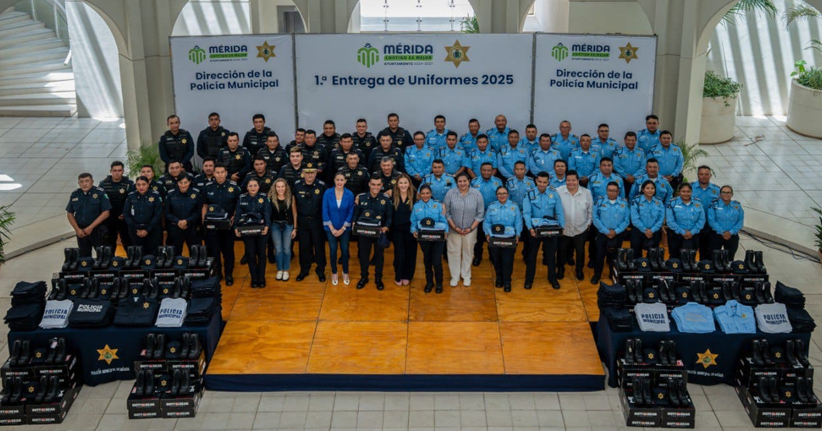 Mérida, Yucatán, 10 de septiembre de 2025. – La Alcaldes Cecilia Patrón Laviada entregó nuevos uniformes a elementos de la Policía Municipal de Mérida. La entrega inicial consta de 4,020 piezas que incluyen gorras, playeras, pantalones, camisolas y botas.
