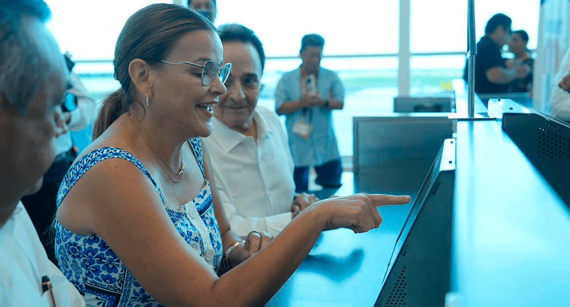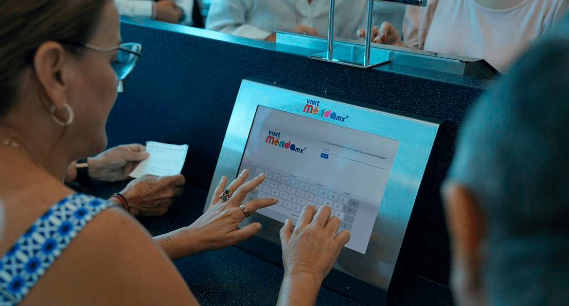 Mérida, Yucatán, 10 de septiembre de 2025.- El Ayuntamiento de Mérida instaló diez tabletas en el Aeropuerto Internacional para recopilar datos de visitantes. La iniciativa «Perfil del Visitante» busca mejorar la experiencia turística y fortalecer la promoción de la ciudad. Las tabletas se ubican en las mesas de las puertas de embarque donde hay mayor afluencia de pasajeros.