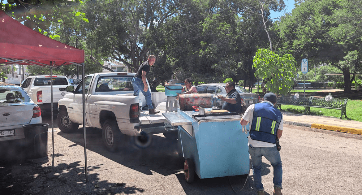 El primer operativo se efectuó en la calle 29 por 18 y 16 de la colonia México, donde se retiró un carrito de tortas y tacos de mariscos tras denuncias vecinales por acumulación de basura, fauna nociva y obstrucción vial. Ocho elementos de la Secretaría Técnica del Servicio Público de Mercados supervisaron el procedimiento.