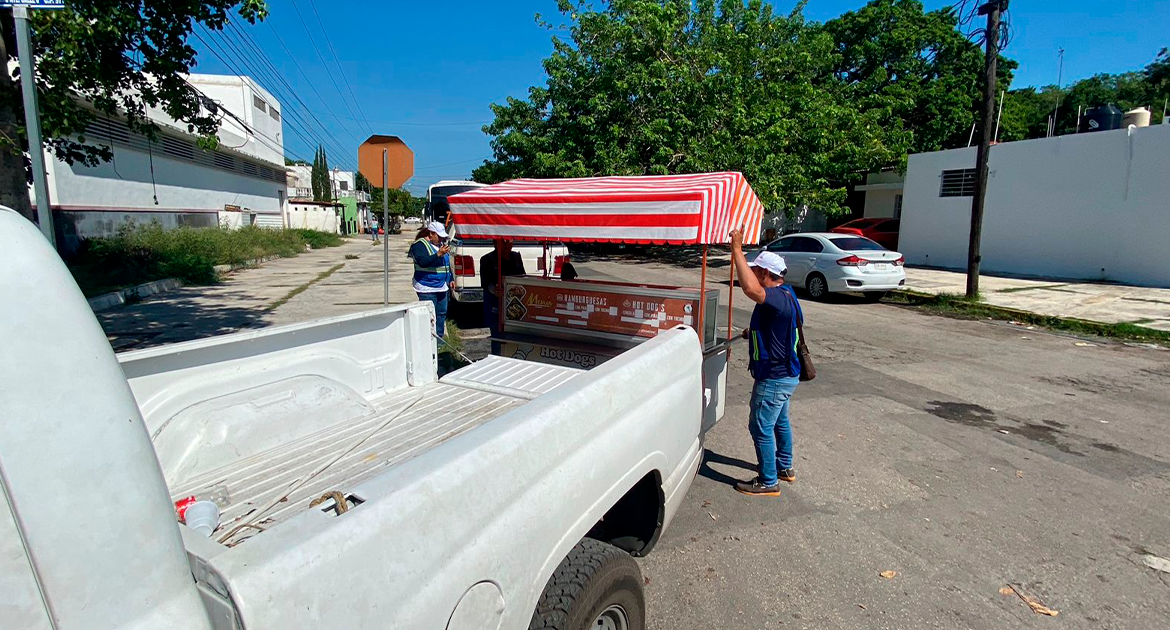 En avenida Canek esquina con Mérida 2000, se decomisó un puesto irregular de jugos y se aplicaron sanciones. En calle 9 esquina con avenida Felipe Carrillo Puerto se retiró un carro de hot dogs sin regularizar. Los comerciantes podrán recuperar sus bienes al cubrir las multas correspondientes.
