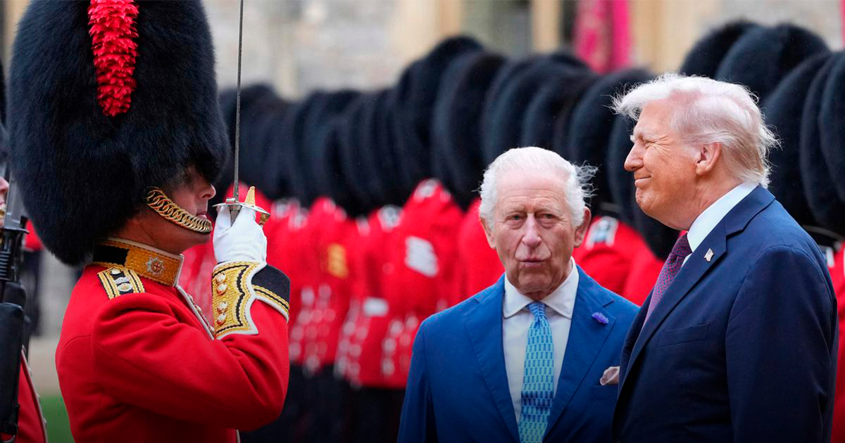 Reino Unido, 18 de septiembre de 2025.- El Presidente Donald Trump fue recibido por el rey Carlos III en el Castillo de Windsor durante su visita de Estado al Reino Unido. La ceremonia incluyó un saludo de 41 cañonazos con artillería de la Primera Guerra Mundial y la participación de mil 300 efectivos del ejército británico.