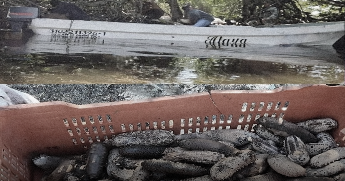 Los agentes decomisaron 400 kilos de pepino sancochado, equivalente a más de cuatro toneladas en estado fresco. También aseguraron dos lanchas con motores, tres tanques de gas y tres peroles utilizados para el sancochado. Las embarcaciones se trasladaron al puerto de San Felipe.