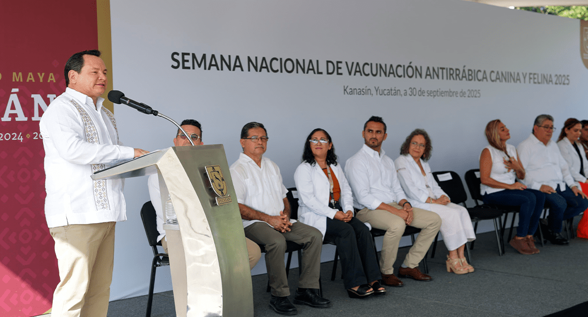 Mérida, Yucatán, 30 de septiembre de 2025.- El Gobernador Joaquín Díaz Mena encabezó el inicio de la Semana Nacional de Vacunación Antirrábica Canina y Felina 2025. El programa aplicará 414 mil dosis gratuitas en todo el estado para proteger a animales de compañía y comunidades.